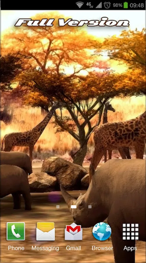 Installation: The main screen (long press) → Live Wallpaper →Africa 3d Free
