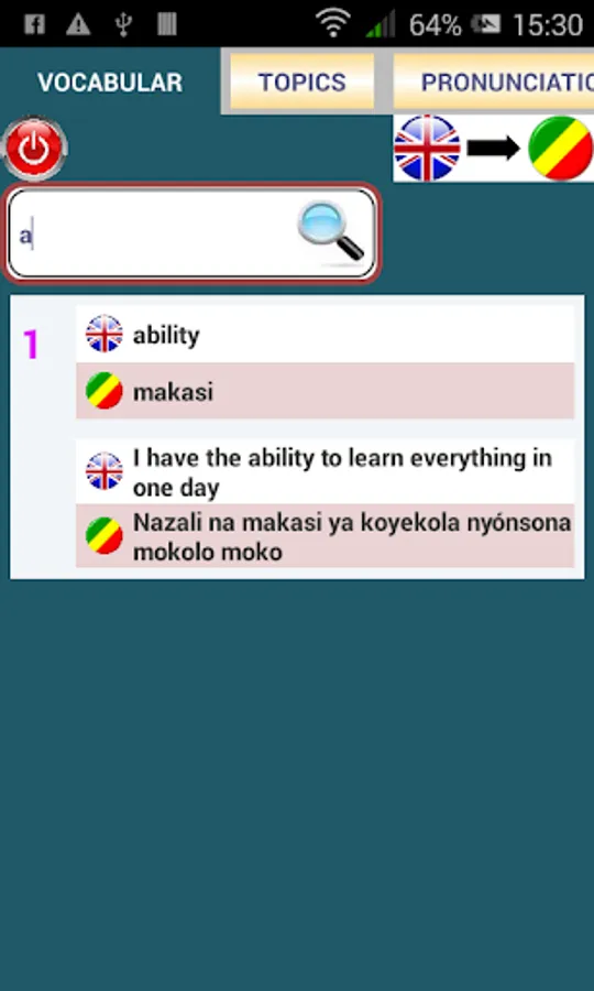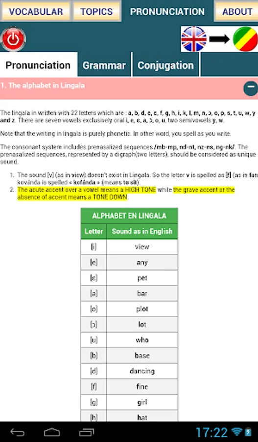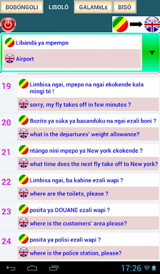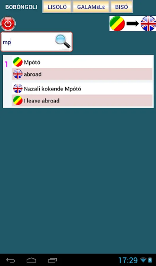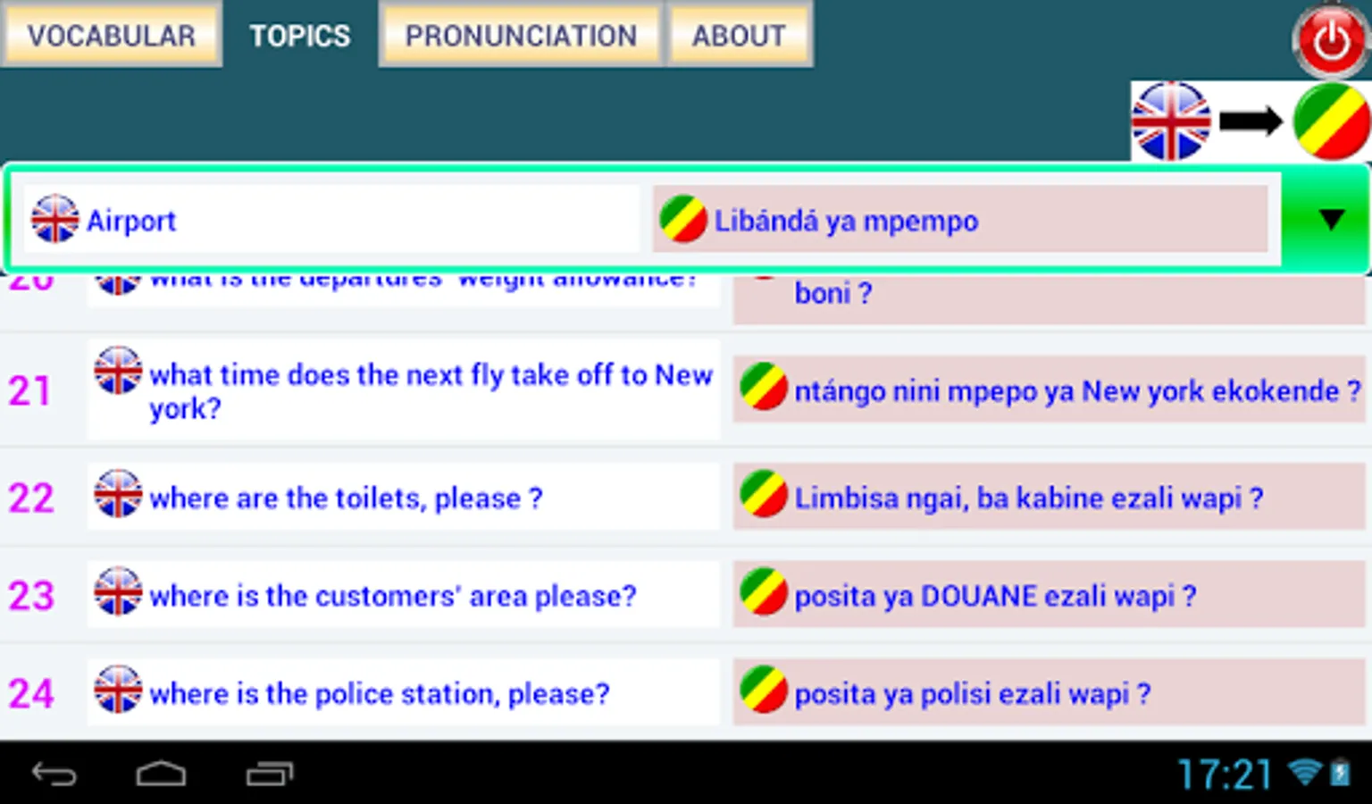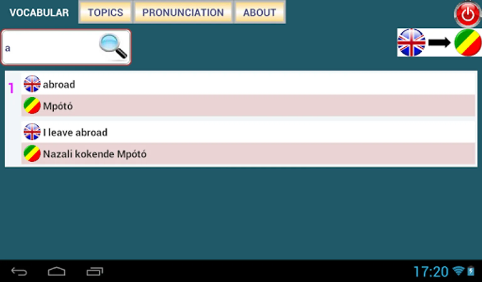 This translator contains more than 2700 words tranlated from English to Lingala, and from Lingala to English. Most of the translated words are illustrated in the two languages.