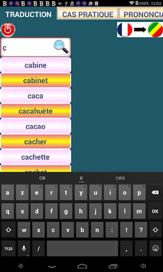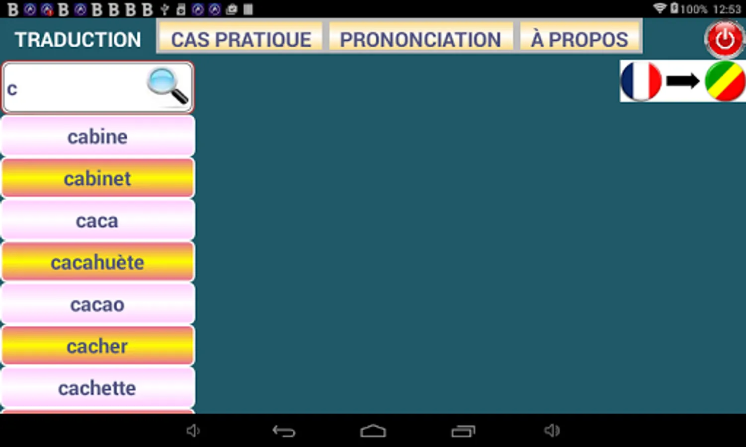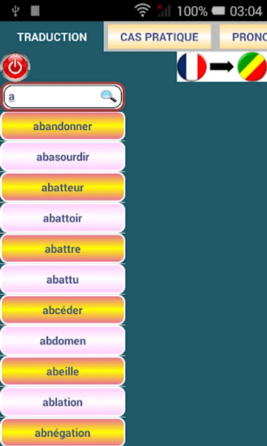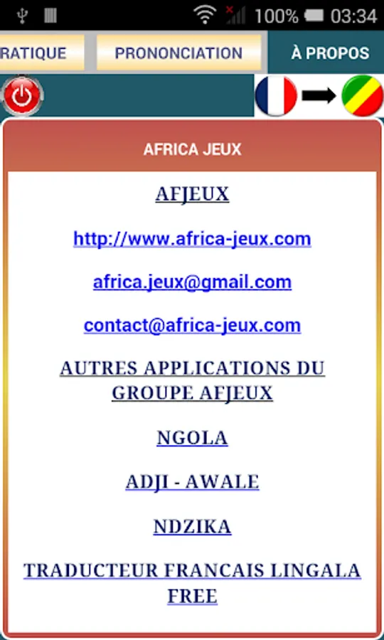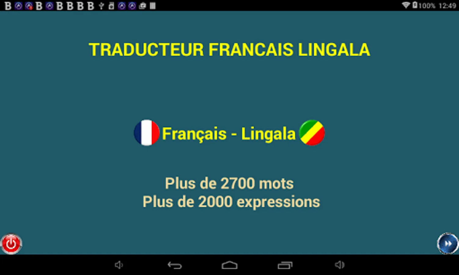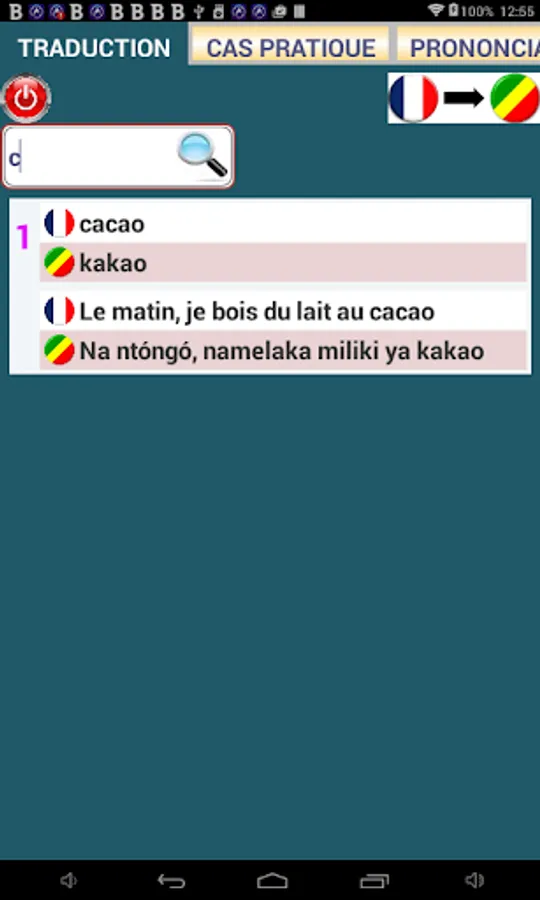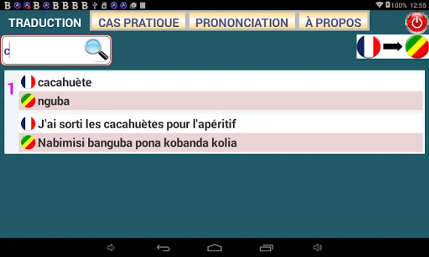 Outside the translated words, this translator is composed of several expressions of everyday life translated from French to Lingala and Lingala to French. These phrases are arranged by category are: