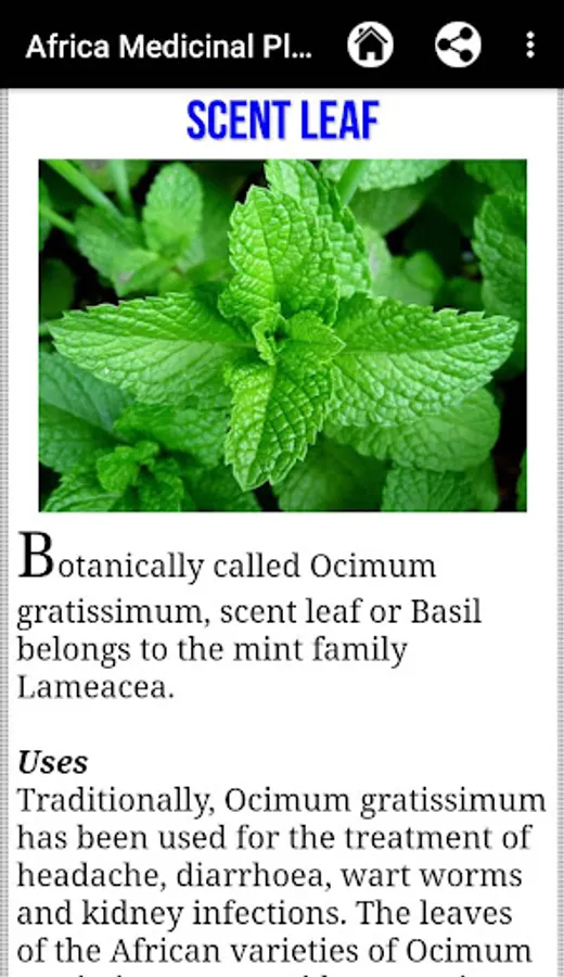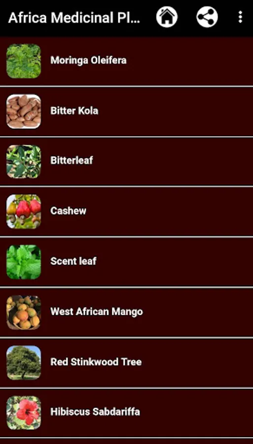Africa Medicinal Plants is a mobile app that provides details about the medicinal usage of plants found in African countries.