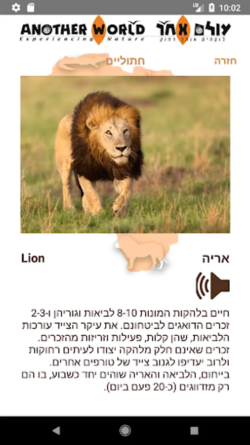 Defines animals that includes pictures, explanations and a voice lecture about each animal.