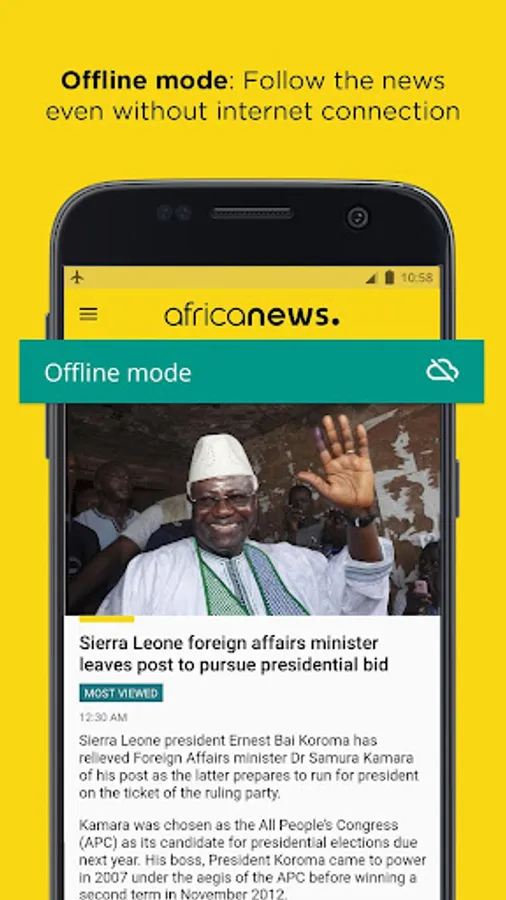 • The OFFLINE MODE: Download the articles for an offline reading. Once you enable Africanews’ OFFLINE MODE, you can safely switch your smartphone to Airplane mode.