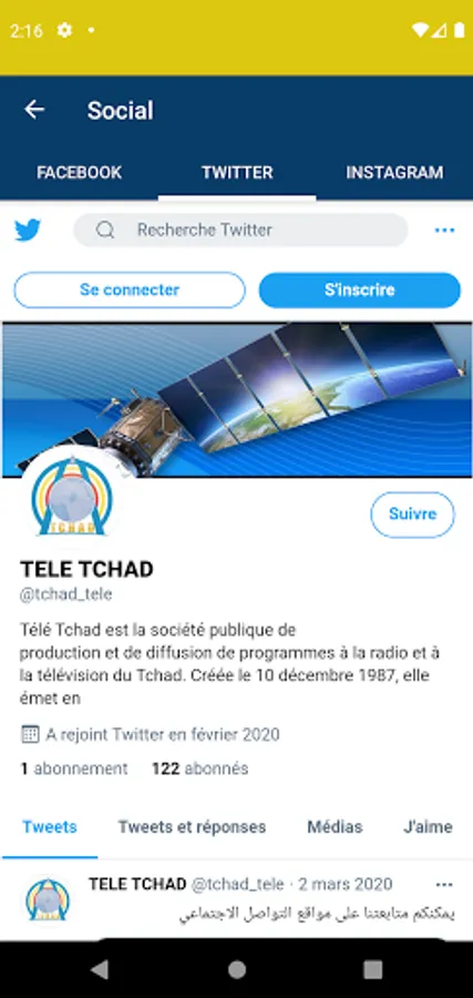 A public service medium created in December 1987 under exceptional conditions, Télé Tchad is one of two directorates - the other being the directorate of Radio Tchad - making up the National Office of Broadcasting and Television of Tchad (ONRTV). National Television has five (5) sub-directorates namely: