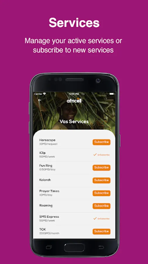 · Validity Service: Subscribe to the Africell Validity service and maintain your line for one year even when not in use.
