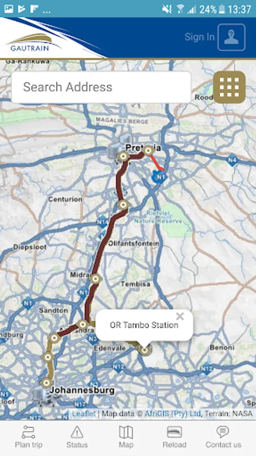• real-time journey planning, station to station, or search for any address in Gauteng, with the option to add public transport operators in Gauteng to extend your journey options beyond the Gautrain network