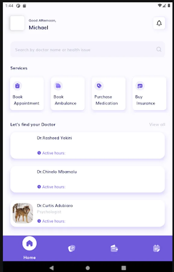 Book medical appointment, book ambulance, buy prescribed drugs.