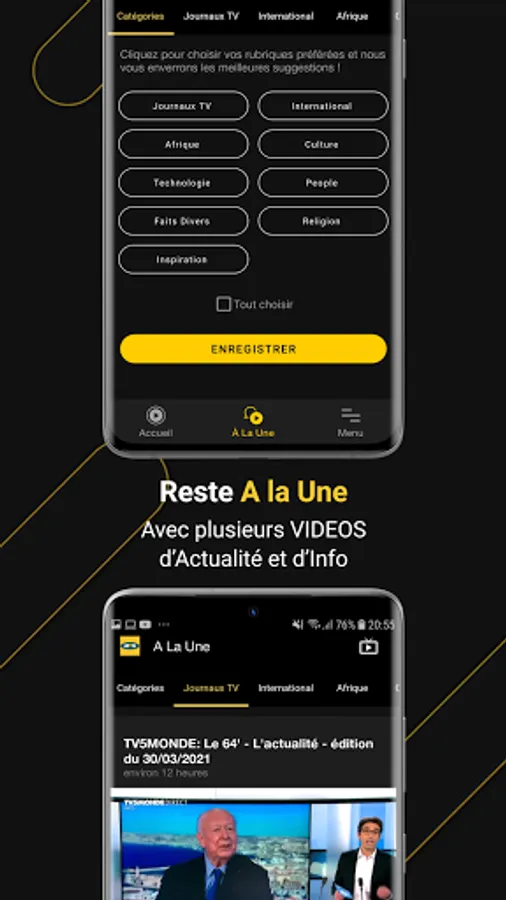 • Be informed of the latest News, through the brand new MAIN FEATURE menu, on different sections such as TV News, International, Africa, Music, Culture, etc.
