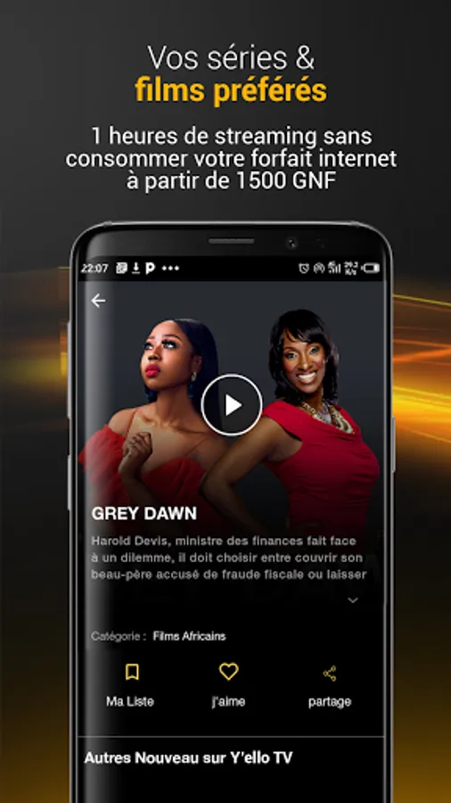 Yello TV est une application mobile qui permet aux abonnés de MTN Guinée de suivre des Films Africains et des chaînes de Télé en Direct sur leurs smartphones.