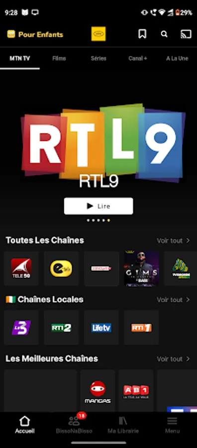• Suivez en direct des chaines de divertissement : RTL9, MANGAS, ACTION, AB1etc.