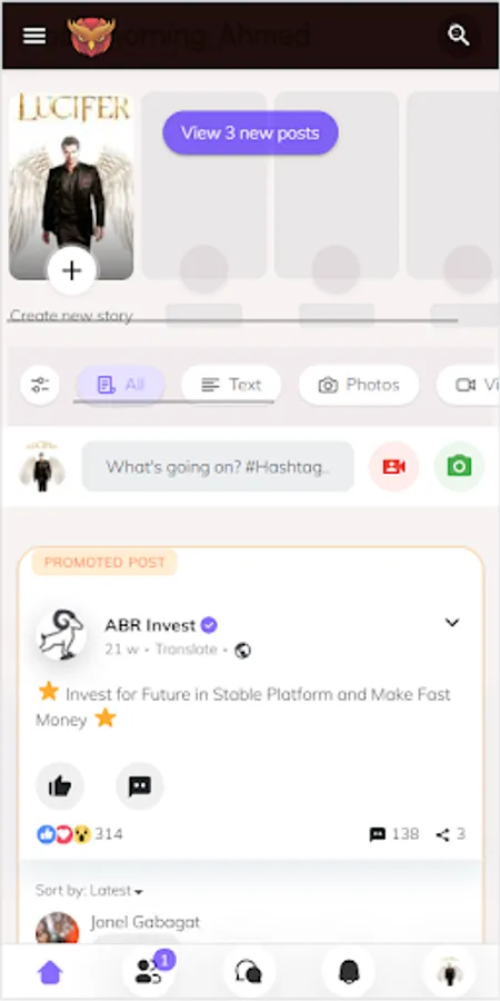 User can add their own post and share it on groups & pages and profiles