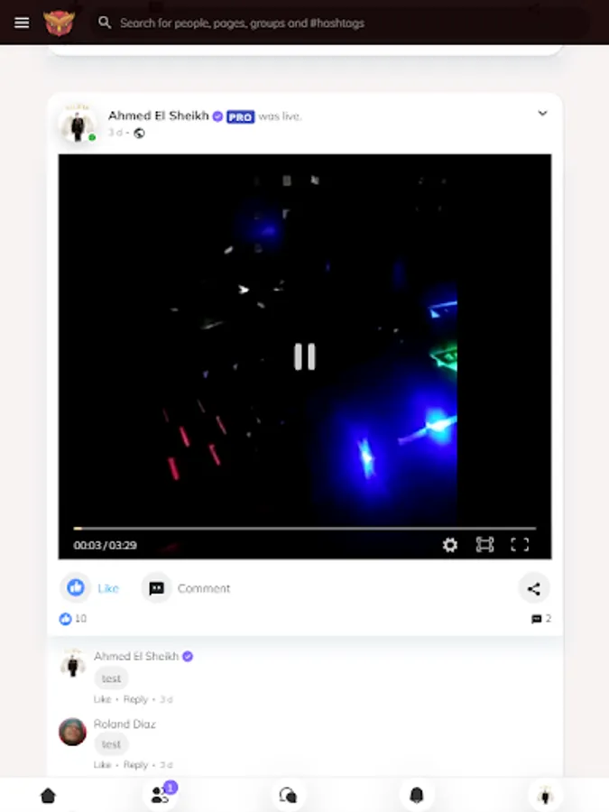 and invite/add his friends to his joined groups Audio / Video Calls Making video calls is fun and easy way to stay connected with family and friends, integrated with ABR SOCIAL from any platform Real-time Audio/video