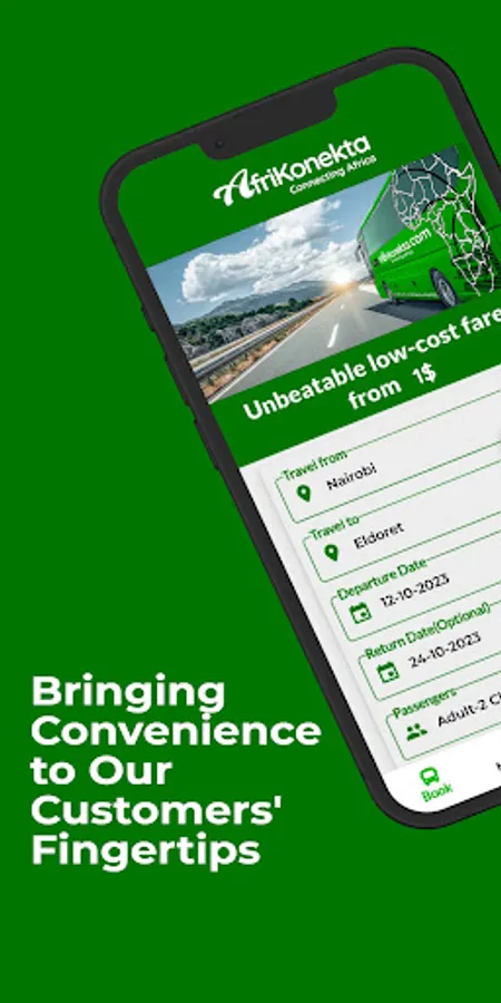 The AfriKonekta app allows you to easily and efficiently book your long-distance bus tickets across multiple countries in Africa starting from 1$. We offer tech enabled bus travel experience continuously expanding our connections and destinations as we build a more Connected Africa. Our commitment is to digitalise and make bus transportation more sustainable, connected, safe, convenient, user-friendly and low-cost in developing countries starting with Africa.