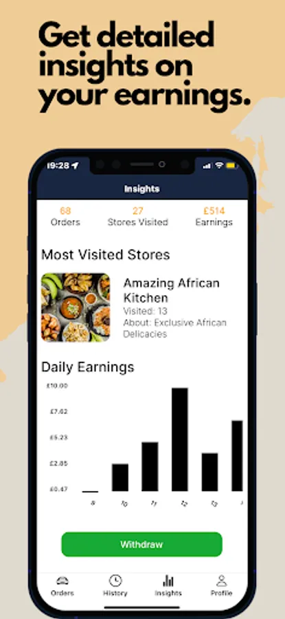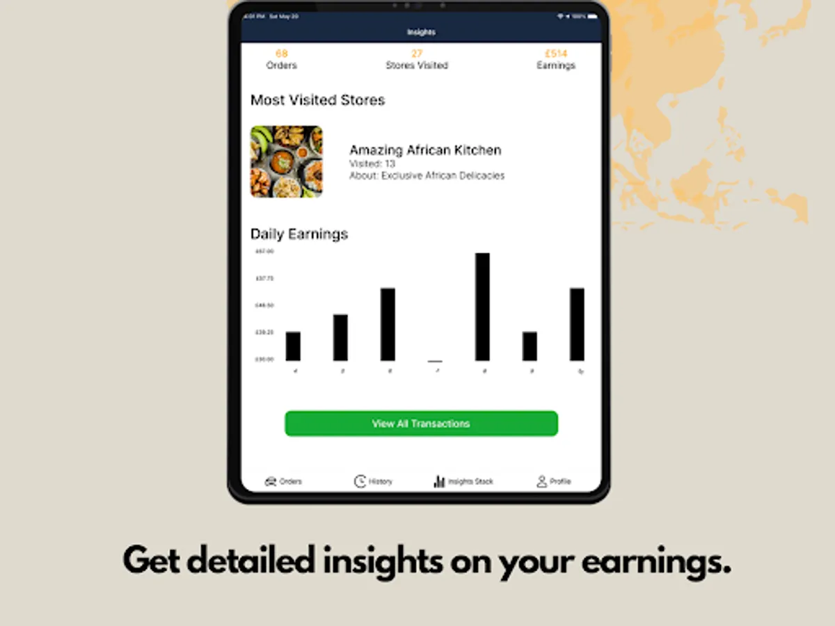 With Afrilish Rider, you'll gain access to a wide network of partnered restaurants, supermarkets, and local stores offering both food and grocery items. Seamlessly transition between delivering meals and shopping essentials, all from a single app.