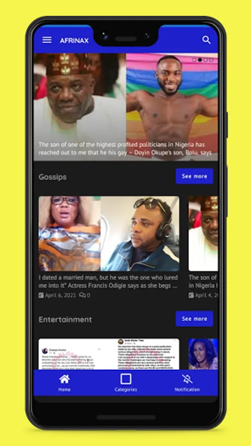 With Afrinax App you can get a notification for every Entertainment Gist and Gossip on your Mobile phone Online