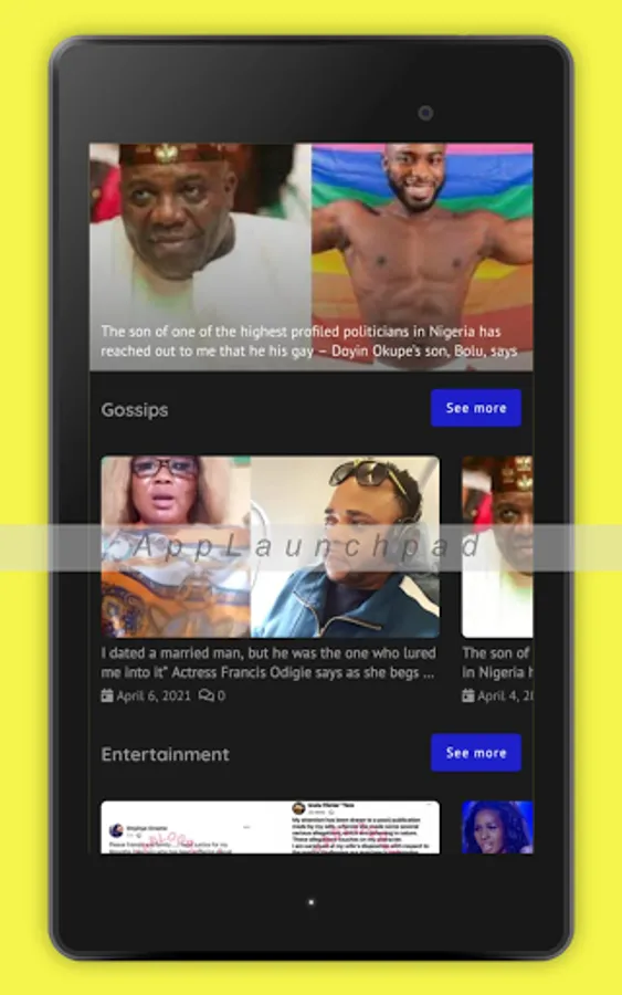 In the App you can Read Celebrity Gossips, Gist and BBNaija or Big Brother Naija Live Update.