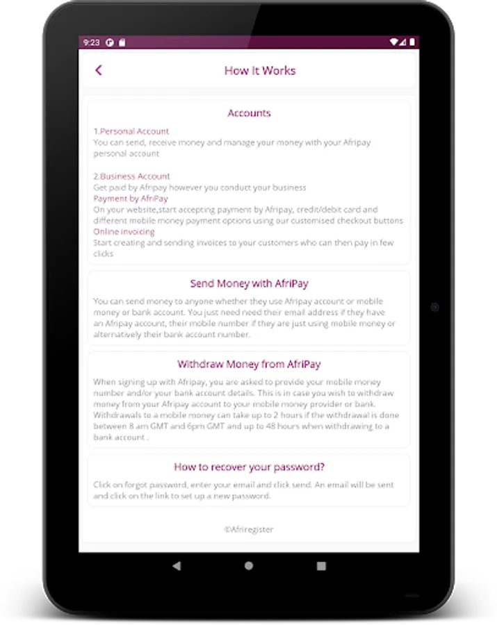 Afripay is a payment gateway which allows its users to send and receive payments from any mobile payment solution regardless of whether you are using the same mobile companies or not as well as credit/debit card payments.
