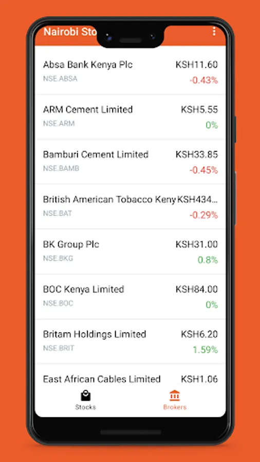 Get latest stock exchange data for major companies listed at Nairobi security exchange.