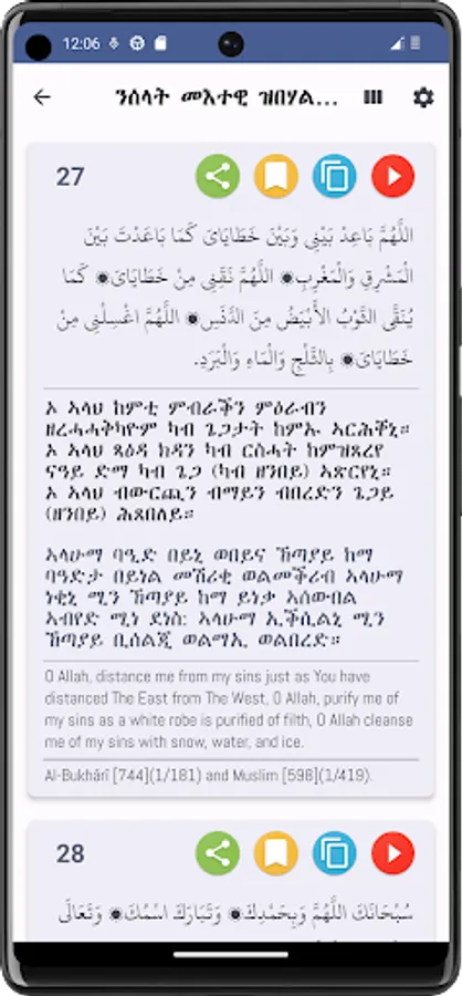 • Includes option to View Duas/Azkar in English along with their References.