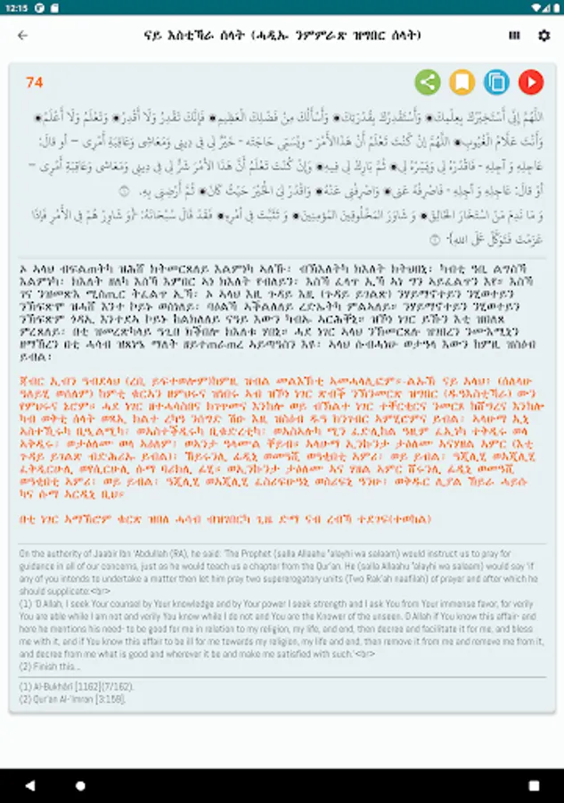 Hisnul Muslim Tigrinya (ሑስኒል ሙስሊም ትግርኛ) is the app containing supplications Duas and Zikr. It is based on the Hisnul Muslim book by Sheik Saeed bin Ali bin Wahf al-Qahtani.