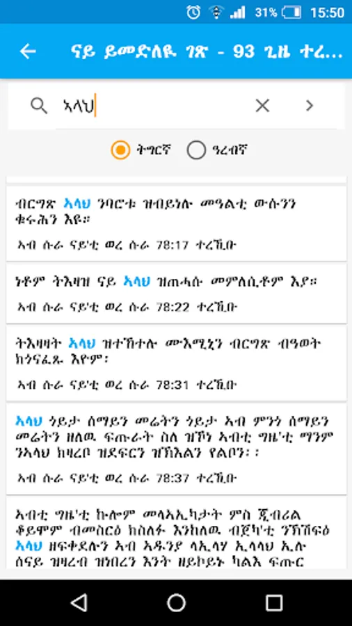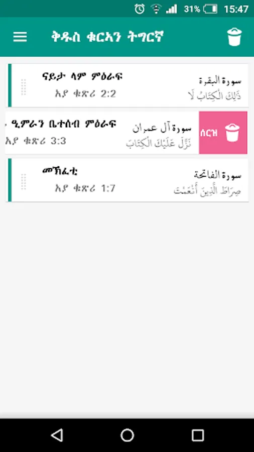 HolyQuran Tigrinya(ቅዱስ ቁርኣን ትግርኛ) is an Android App for digital holy Quran in Tigrinya language.