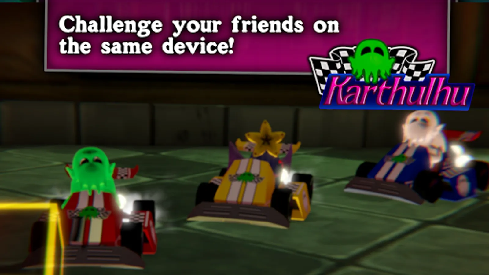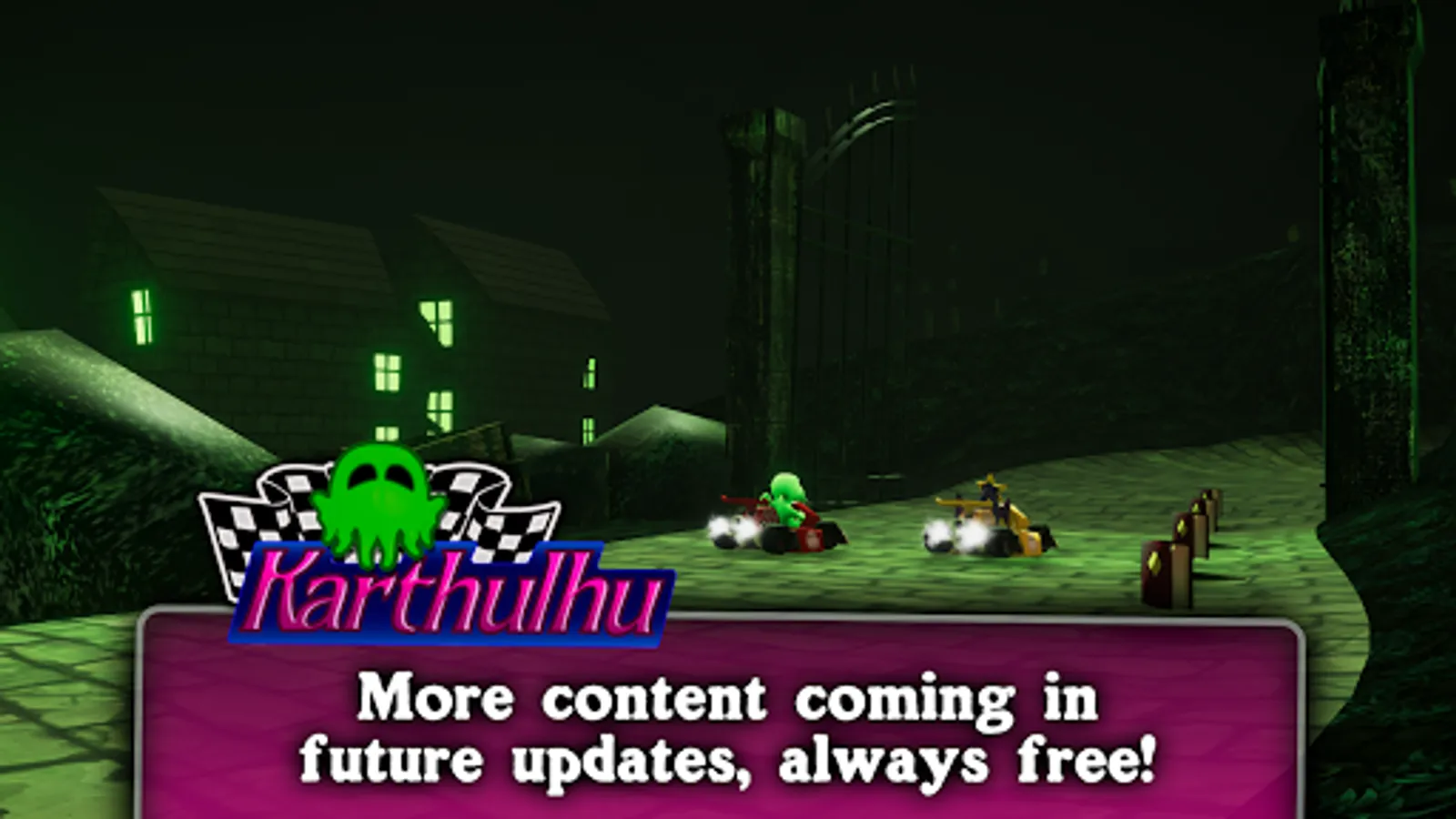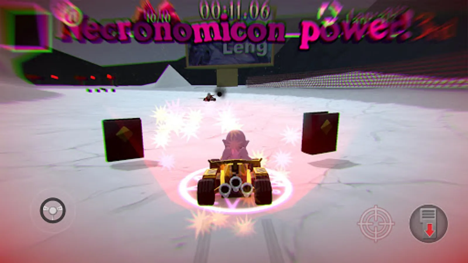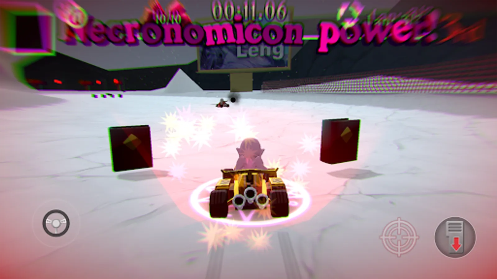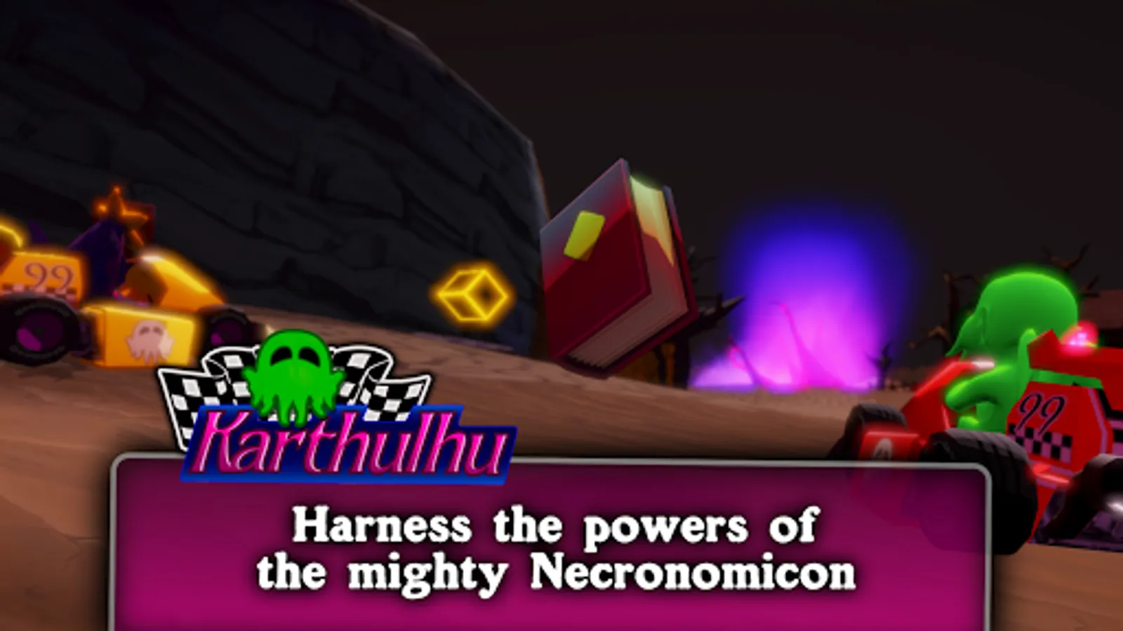 Taste the power of the Elder Gods from the Cthulhu Mythos in amazing go kart battle races! Unleash the madness of the Mighty Necronomicon!