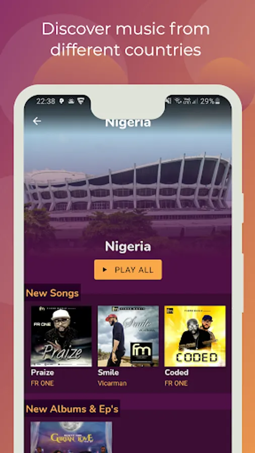 - Discover new music, artists, songs, playlists from African countries you never had access to before.