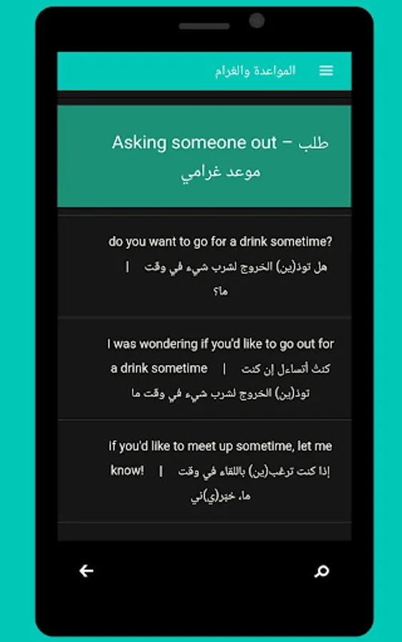 Basic Phrases, Most Common Expressions, Emergencies, General Conversation, Friendship with People, Family, Relationships, Interests, Work, Education, Religion, Dating, Love, Arranging a Meeting, Reporting About, Taxi Travel, Asking for and Giving Directions, Traveling, Cars, Renting Car, sociability with guests, at home, weather, dates and time
