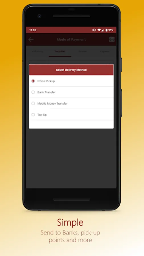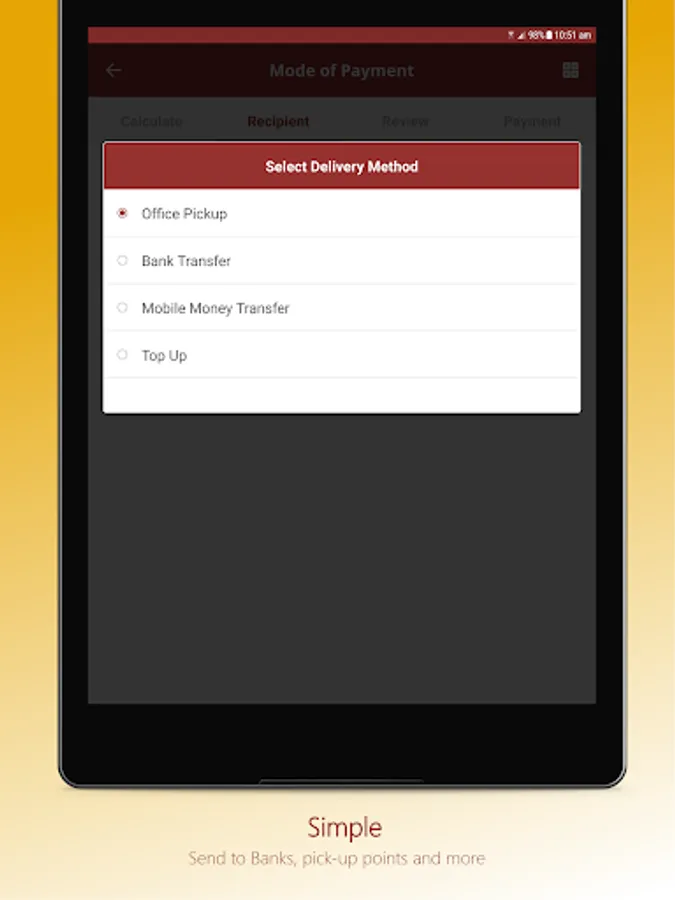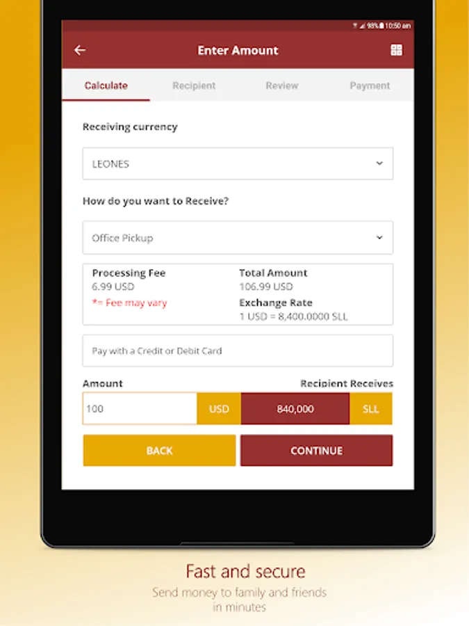 • Send money easily from your bank account or debit/credit card to any of our locations