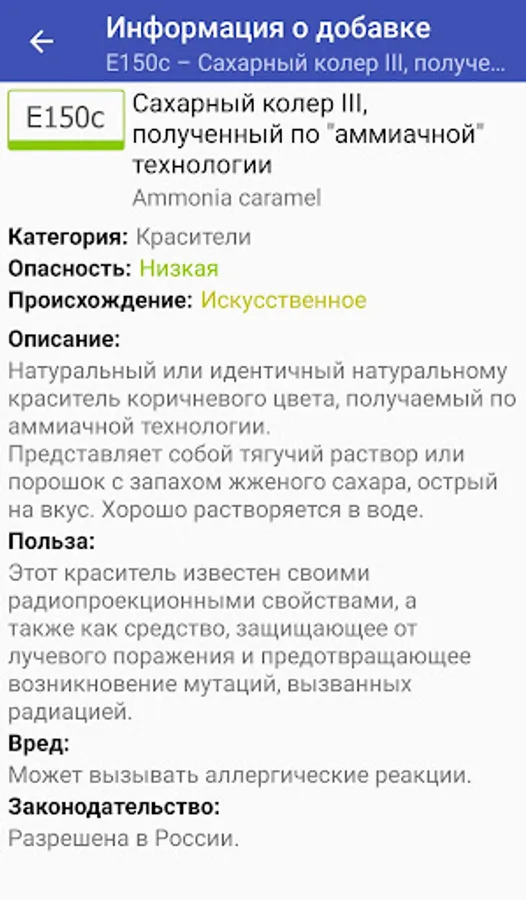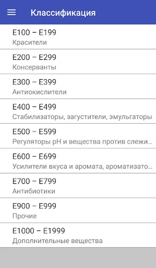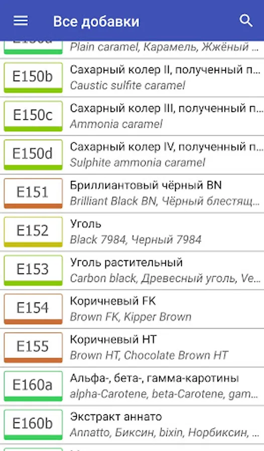 With the help of a convenient search, you can quickly search for additives of interest both by code and by name.