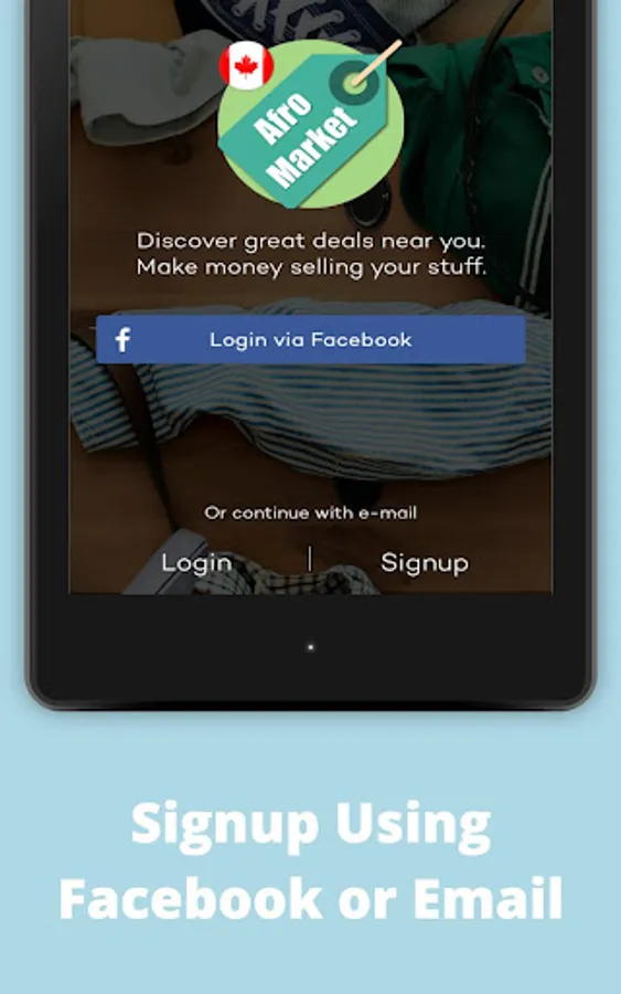 Afro Market lets you snap a photo of an item with your smartphone, create a listing within 20 seconds or less, and have your item discoverable by many people around you in Canada!