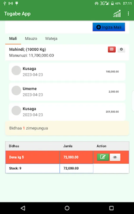 A mobile Application designed to save private sales service for Togabe company Limited. The application will be used by on Togabe staff to manage company's sales and records.