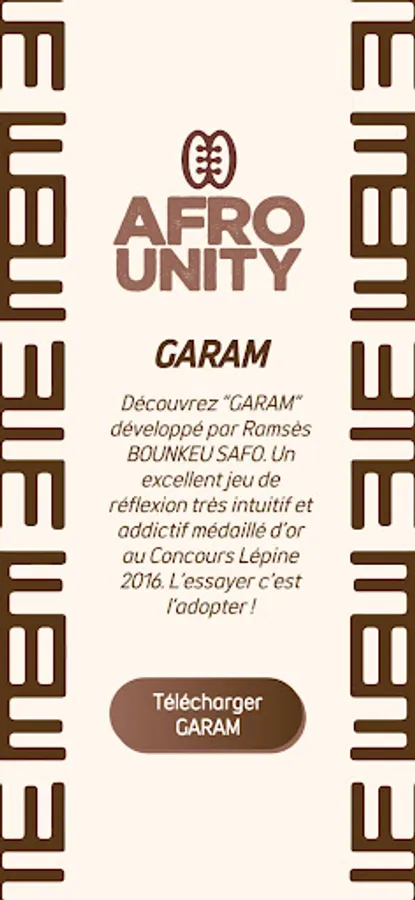 Afro Unity is brought to you by Ramsès BOUNKEU SAFO, an African creator of mobile games.