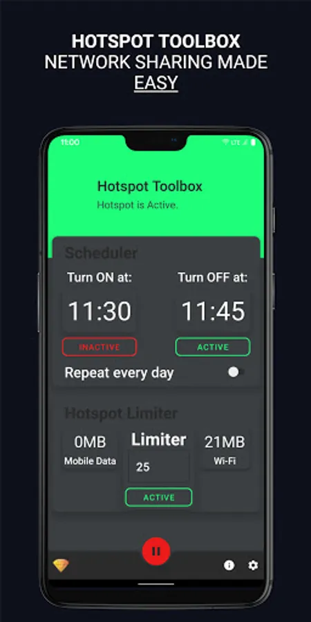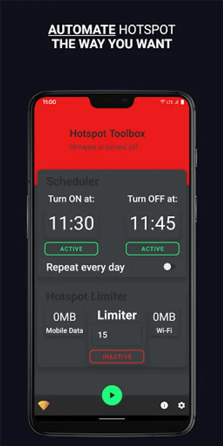 With a scheduler and a limiter, you can automate your Mobile Hotspot and don't let your users abuse it!