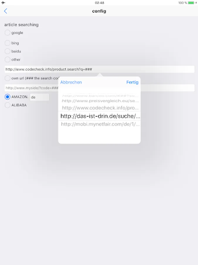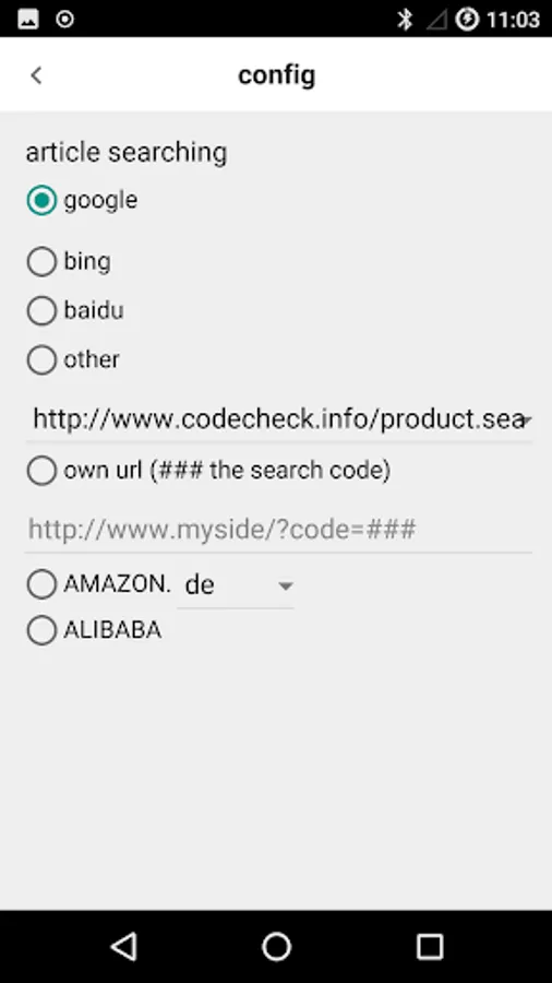 Scan Product Code (EAN / UPCs) and opens a corresponding search engine that is adjustable.