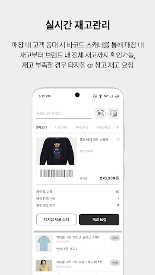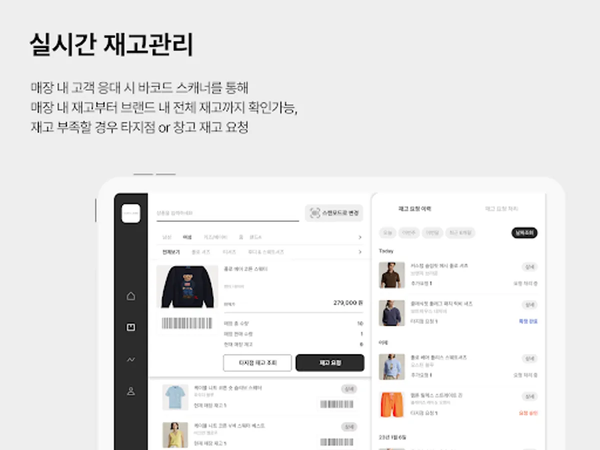 When interacting with a customer in a store, barcode scanners can be used to check the product's in-store inventory as well as the overall inventory within the brand. If there is insufficient inventory in the store, inventory management can be performed immediately by requesting inventory at another branch or requesting inventory at the warehouse.