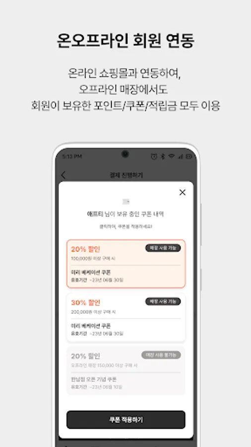 In conjunction with online shopping malls, you can use all points/coupons/points owned by members at offline stores!