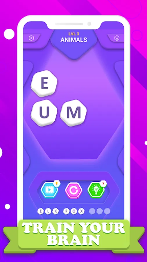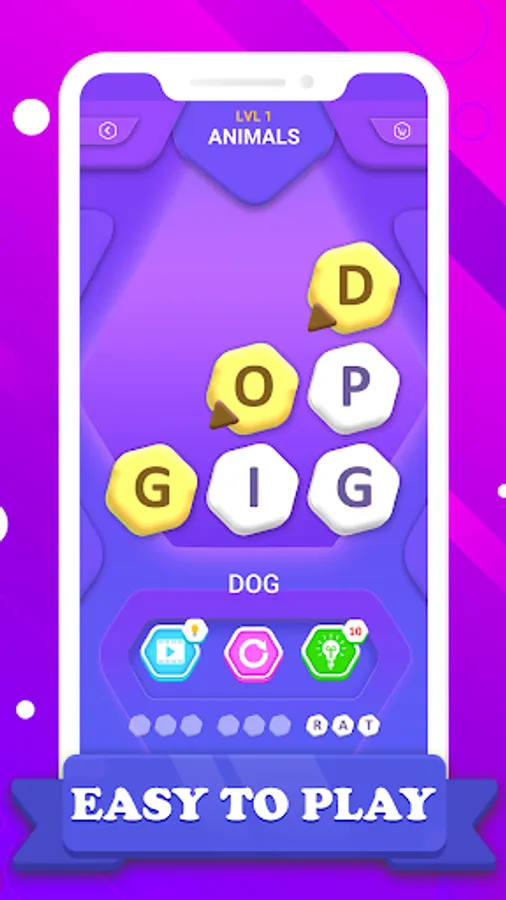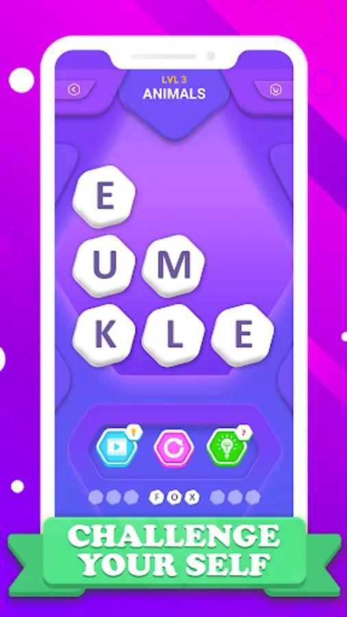 Do you have trouble coming up with the word hint? You can buy a word suggestion with coins which will help you to pass the level.