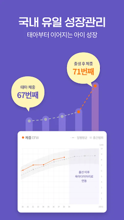Menstrual cycle calculation, ovulation day calculation, pregnancy probability calculation, gestation week calculation, ultrasound value automatic analysis, ultrasound album, fetal growth management, fetus automatic check, infertility management, 280 days record, diary sharing, finding obstetrics and gynecology and postpartum care centers, parenting diary, Child growth and development, infant vaccination