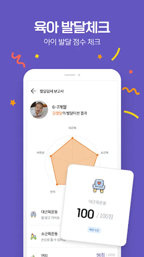 1) Check the development of your child every month as a mission and check the automatically generated development report.