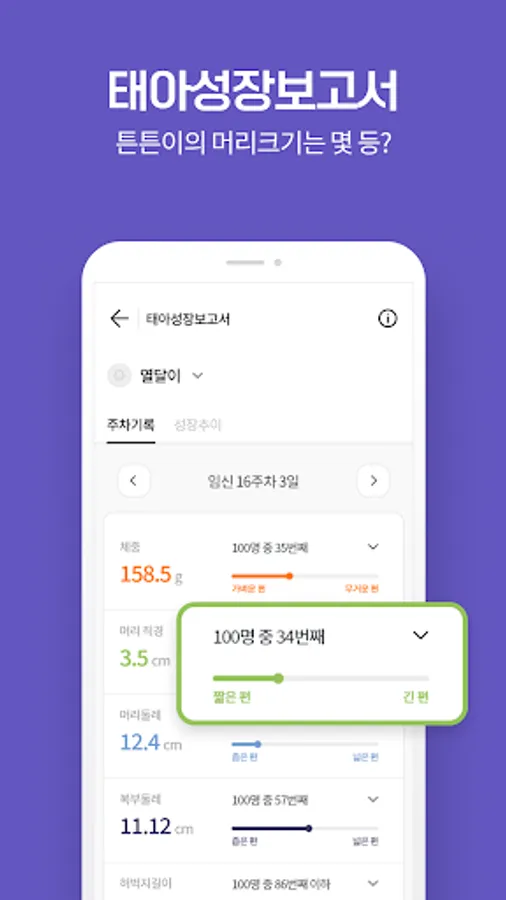 3) Check the graph to see if the baby is growing well in the womb through 5 fetal growth figures such as weight and head circumference.