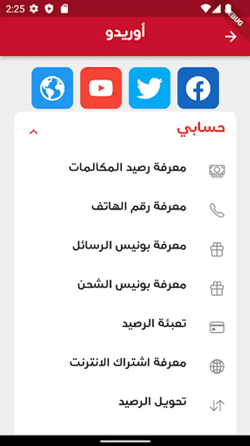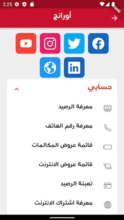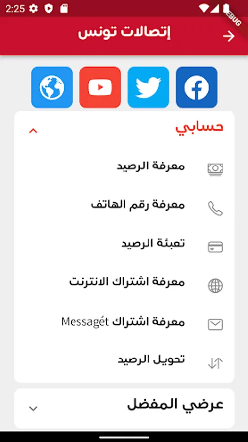 The Tunisian Services application contains many services for mobile phone customers in Tunisia, including: