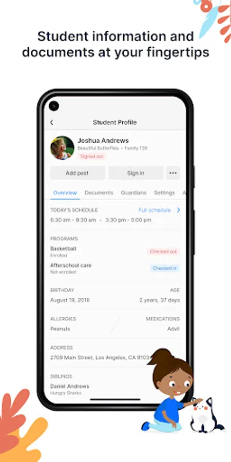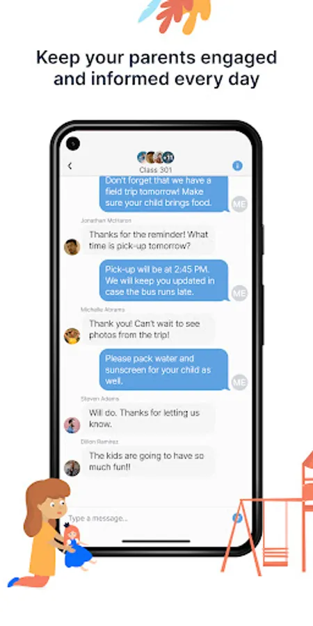 As a parent you can look at an overview of your children's schedules, create and edit authorized guardians, change your pickup locations, and create playdates.
