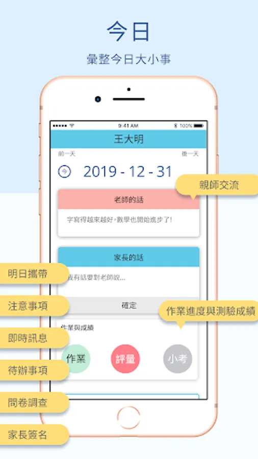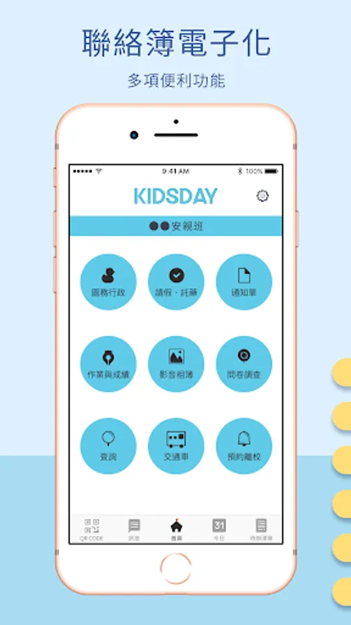1. 校務行政:校方有任何通知單或公告,都可以直接讓家長點選閱讀。
