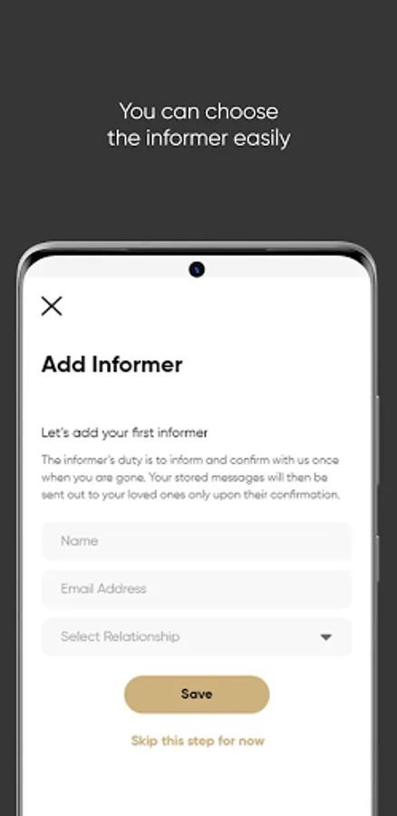 Download the App and sign up as member. Before you can write your first message, you will be asked to appoint at least 2 Informers. Informers are people you entrust the duty of informing the App when you have passed away. Informers can be your good friend, spouse or family members, people whom you trust. You can then write your messages to your loved ones and specify their email addresses. Upon your passing, the App will email your loved ones who will then be able to retrieve your message by installing the App.