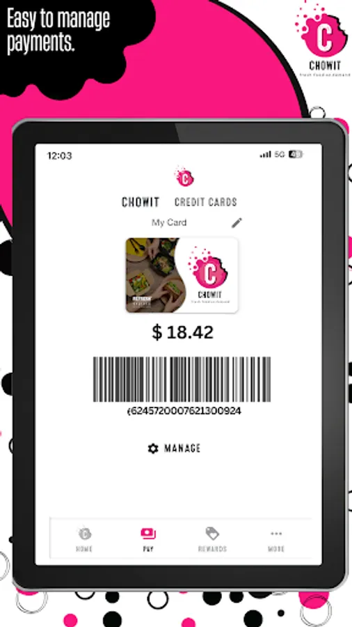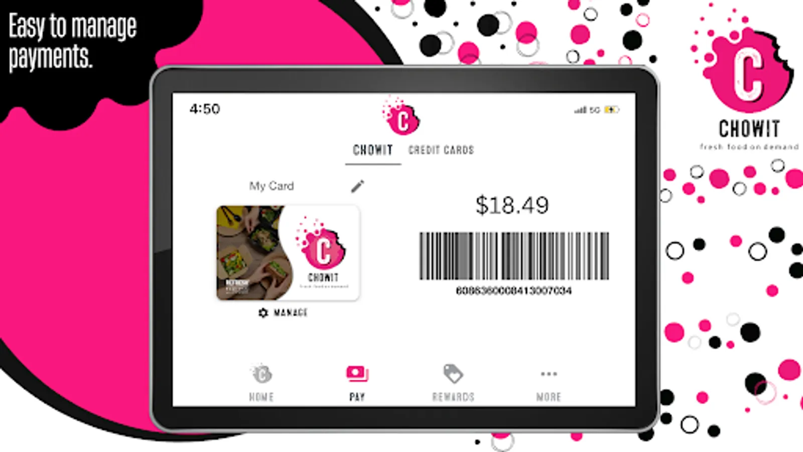 Your refreshment advantage is here. Offering cutting-edge mobile payment, rewards, and loyalty, with Chowit you can: