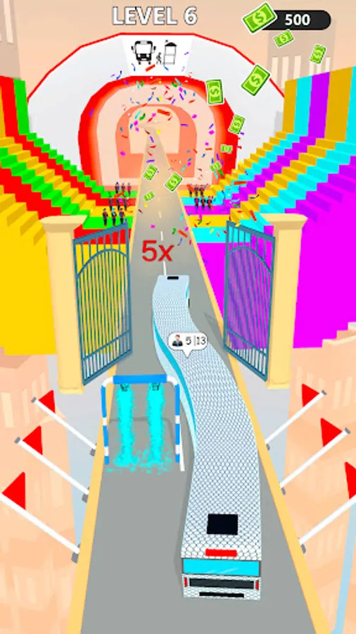 1. Swiper left and right to move people from the bus stack in this run race game.