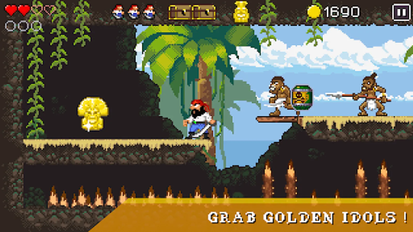 Cutlass and Coins is a pixel pirate platformer game with searching for hidden treasure chests, rescuing sailors in trouble, and lots and lots of shiny gold and silver coins !