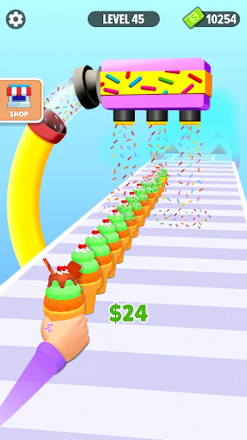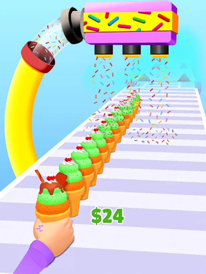Power-ups and bonuses to help stack their ice cream game more effectively.