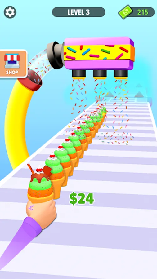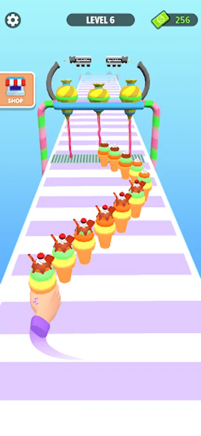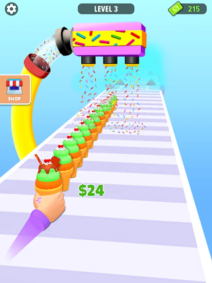 Ice cream stack popsicle mania is an ice cream game with runner ice cream pouring station elements for extra fun! In this fantastic cup of ice cream wala game, you have to collect molds of different shapes along the runway, fill the colorful juices in these molds, freeze them to create a yummy popsicles long stack and sell these ice cream pops to customers and earn cash rewards.
