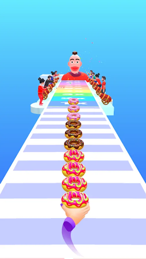 The only thing as good as eating donuts is making them! Are you ready to run and collect some sweet and tasty donuts in donut games? In this app, you get the chance to make up some delicious and colorful doughnut game. Doughnut Games will be eaten at the end of the goal in run race, the person who will eat reacts differently according to your donut maker. The person who will eat reacts differently. When you reach the goal, the longer your donuts, the more money you will get. A super fun doughnut stack and donut running game.